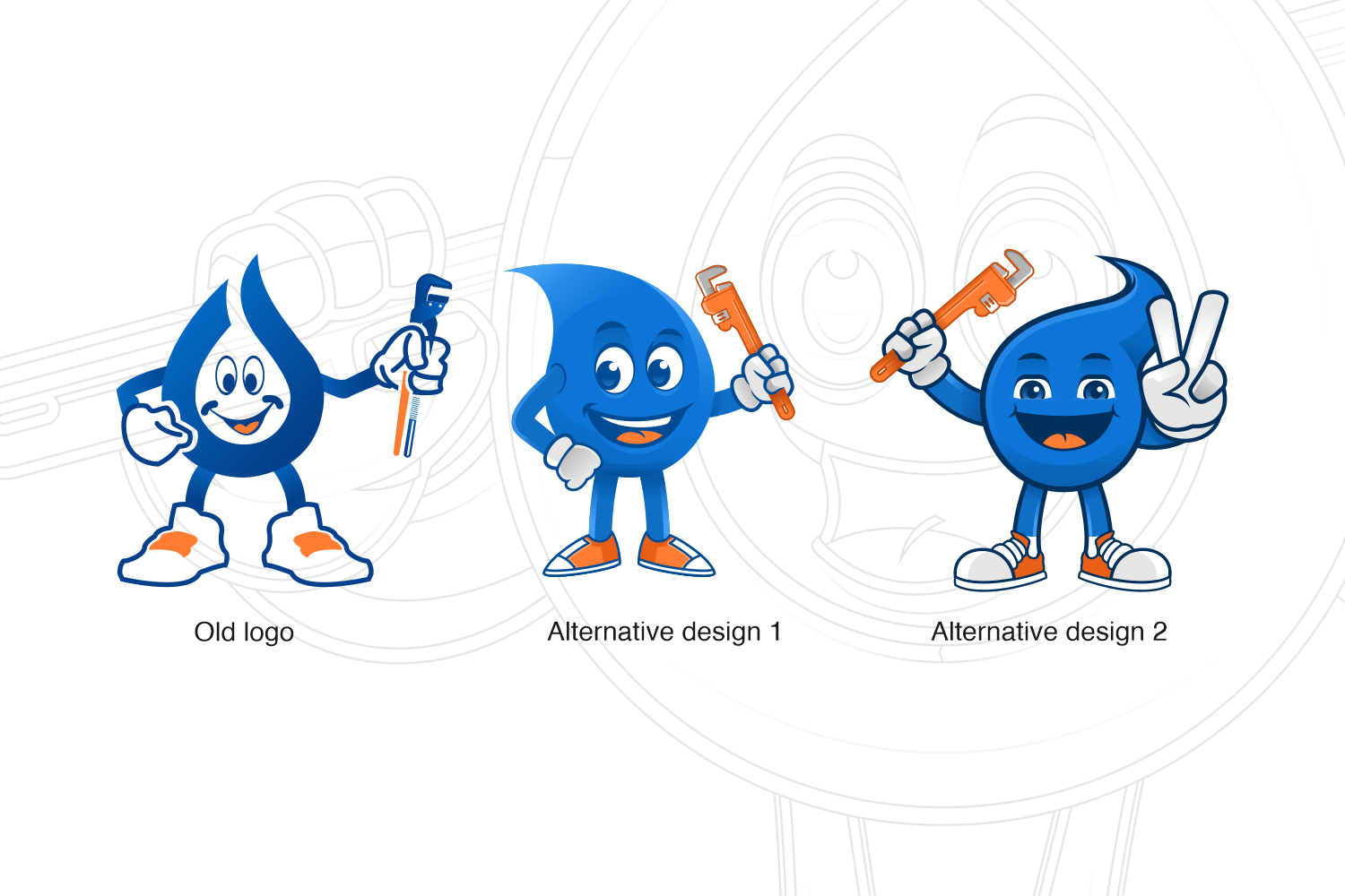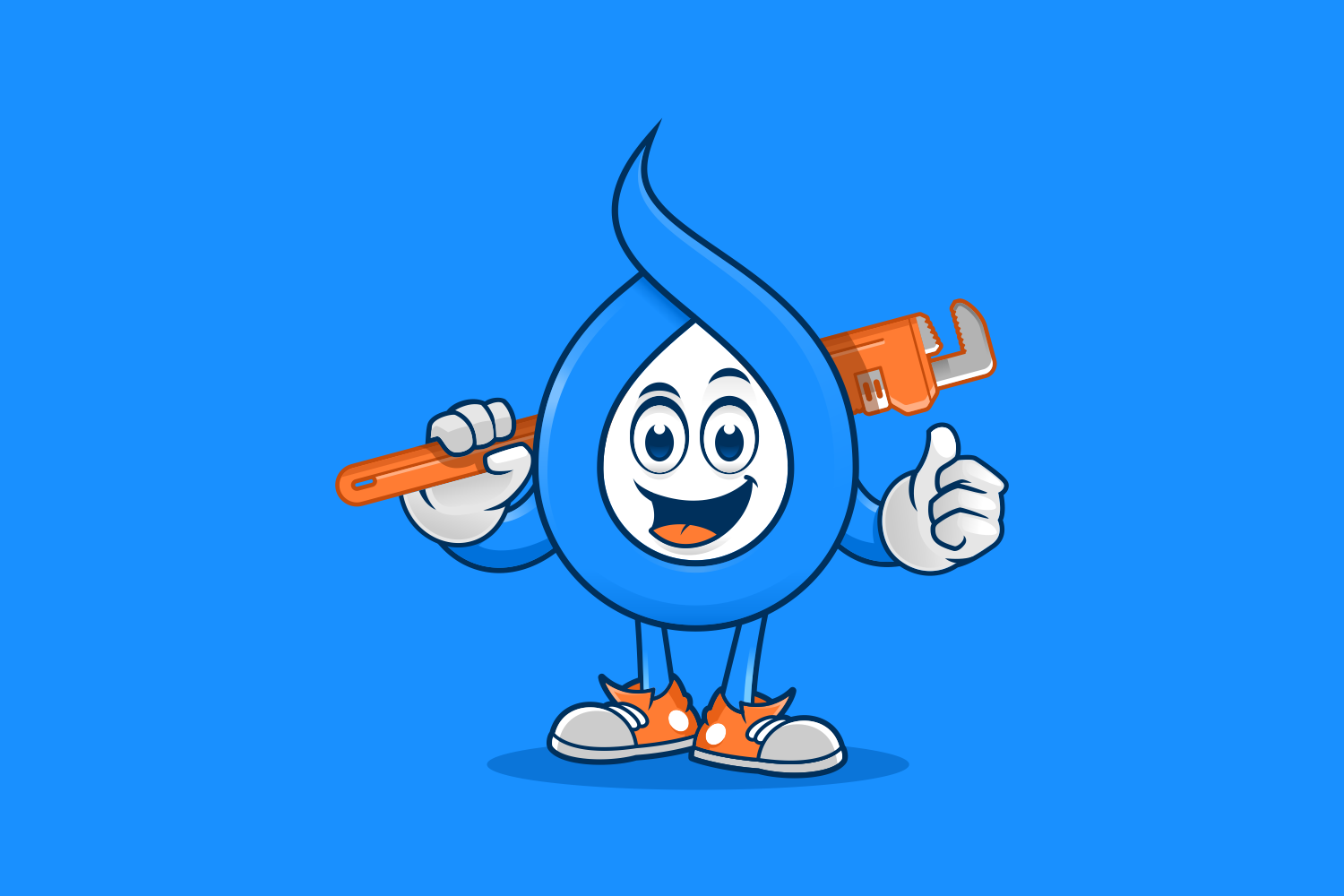The mascot is designed as a friendly water droplet character, representing water, reliability, and plumbing expertise. To reinforce the company’s core service, the character holds a pipe wrench, symbolizing technical skill and hands-on professionalism. The cheerful expression and thumbs-up gesture were intentionally crafted to build trust, approachability, and customer confidence.